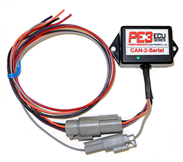 For use with PE3 CAN bus to convert to serial data stream for third party loggers and dashes (STACK Protocol). Includes 18" wire pigtail for serial data and 18" wire pigtail for connection to ECU.
