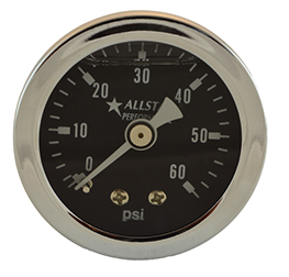1.5 inch liquid filled pressure gauge, 0-60 psi.
