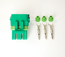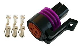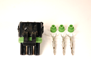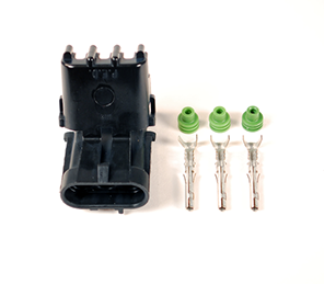 3-pin male Metripack 150 series connector, includes body and pins. For use with oil and fuel pressure sensor.