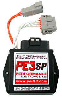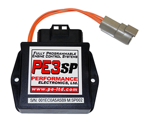 The PE3-SP000 engine control unit is a compact, adjustable system that handles fuel and ignition responsibilities for engines requiring no more than 2 injector drivers and 2 ignition coil drivers. The ECU is potted in a plastic enclosure and completely waterproof. It comes with peMonitor and peViewer software.