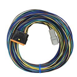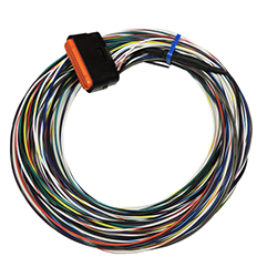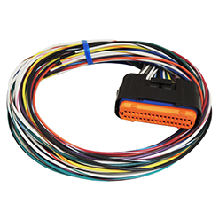 34-pin connector harness for the PE3 series engine control unit. Consists of 34-pin fully populated ECU end connector that terminates in bare wire at the opposite end. Color coded and striped wires. 6' long, unterminated. Data Sheet